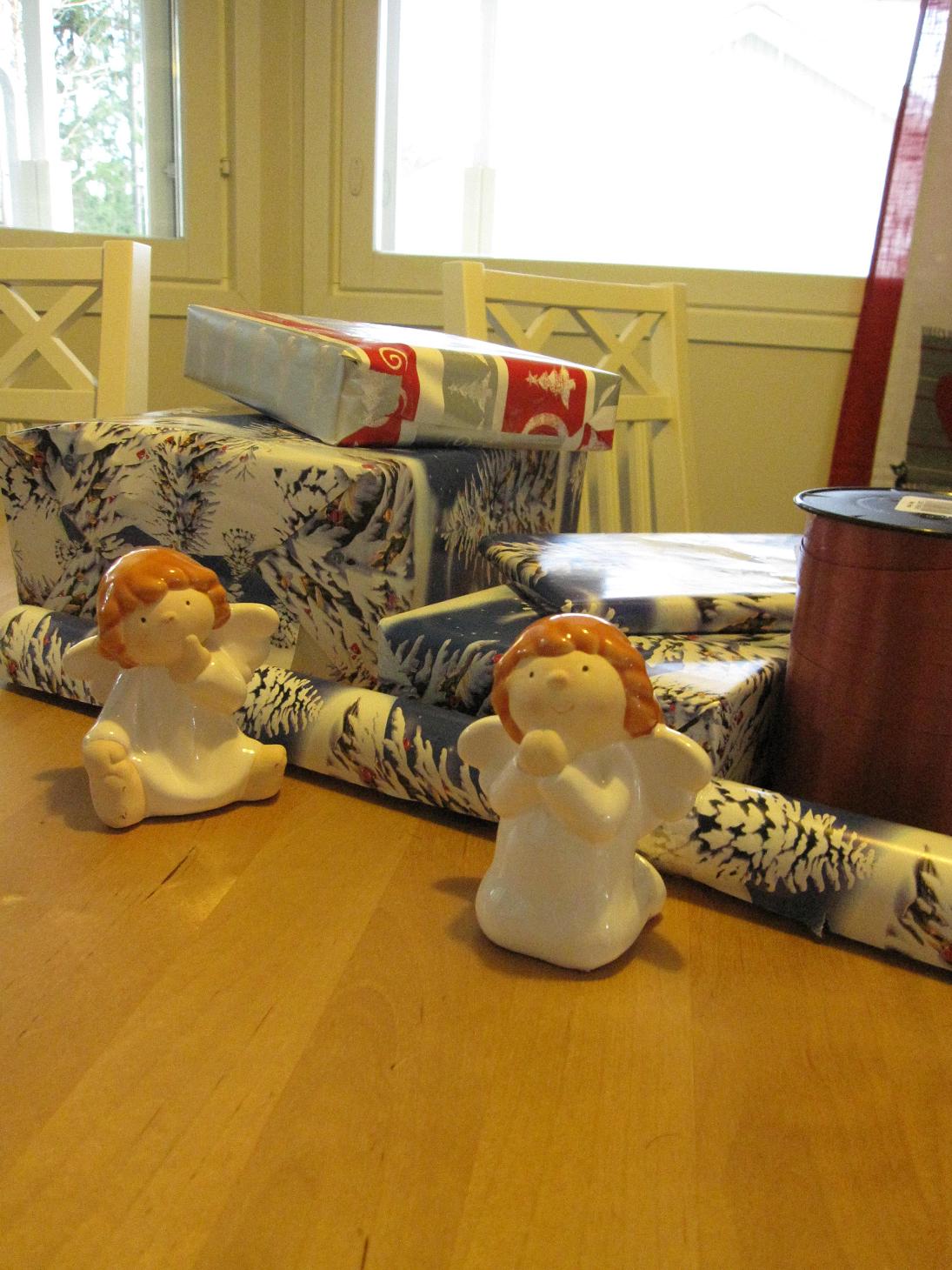 För en del av pengarna köptes klappar till tomtens säck! Vad kan det vara?? Undrar Änglarna nyfiket….