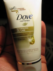 Nu tycker jag mig ha fått en uppfattning om detta Dove Nourishing Care Oil Express Intensivvårdsbalsam, som sägs ge tre gånger så mycket näring som ett vanligt balsam. I den lilla medföljande foldern sägs det även b.la. vara ’det första randiga superbalsamet’