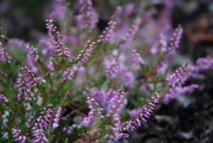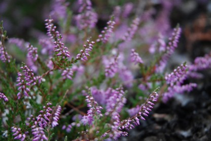 Här sitter jag nu med fingrarna på laptopens lilla tangentbord och tittar ut genom fönstret. Solen börjar sänka sig och löven vajar sakta på träden. Jag sänker blicken något och ser en otroligt vacker blomsterbädd av lila ljung.